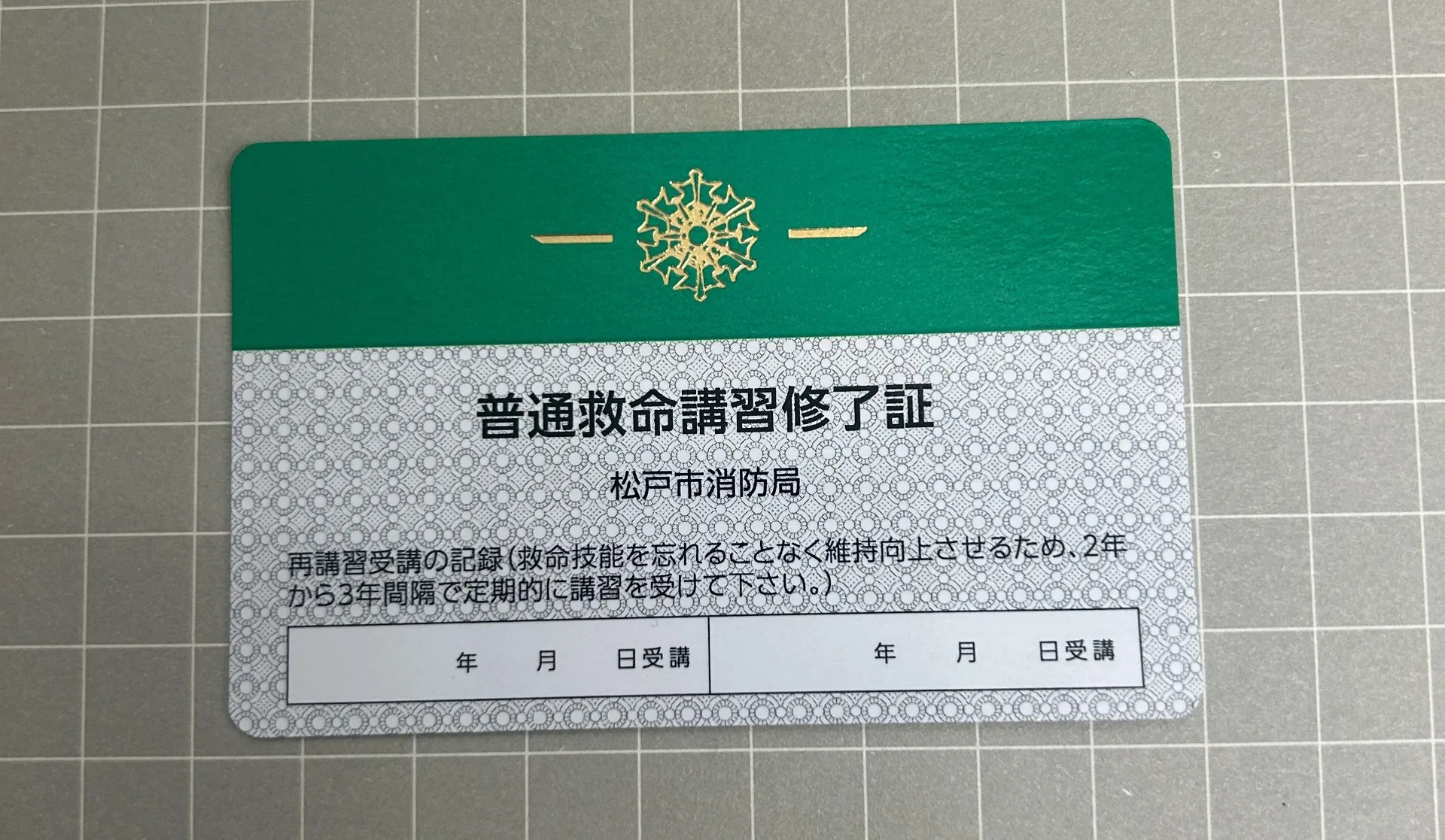 その後隊員さんから講習修了証をいただき、終了となりました。