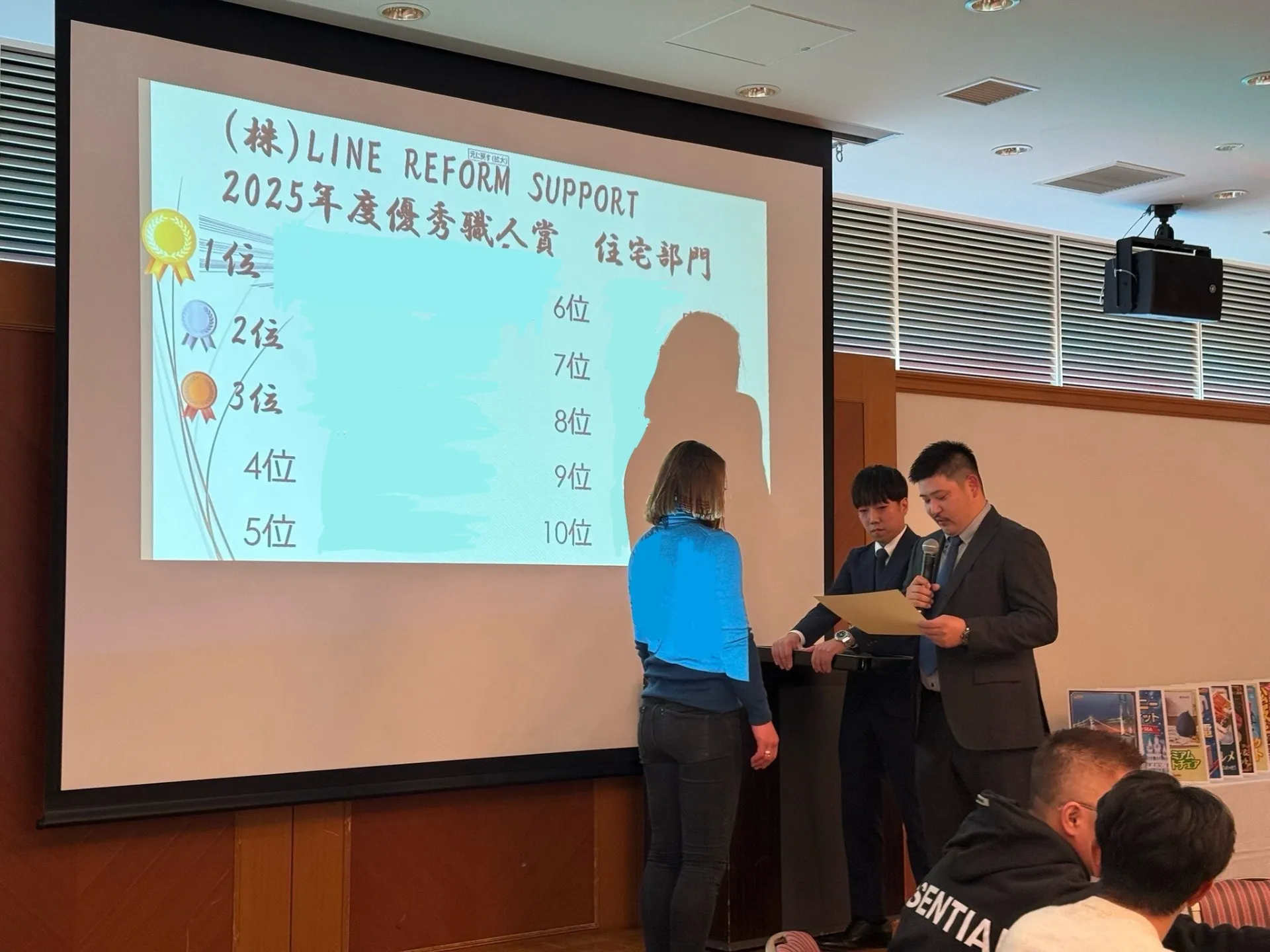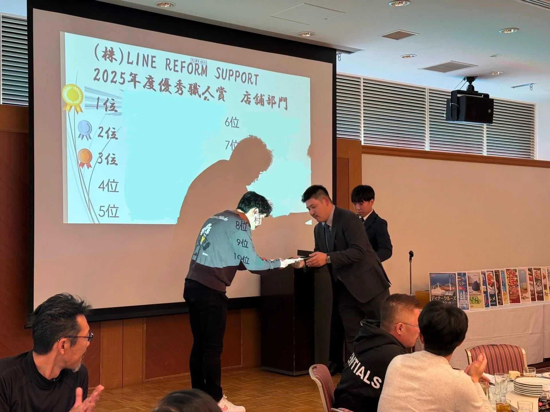様々な分野において、優秀な成績を残した社員の名前が続々と読み上げられ壇上で表彰されました!