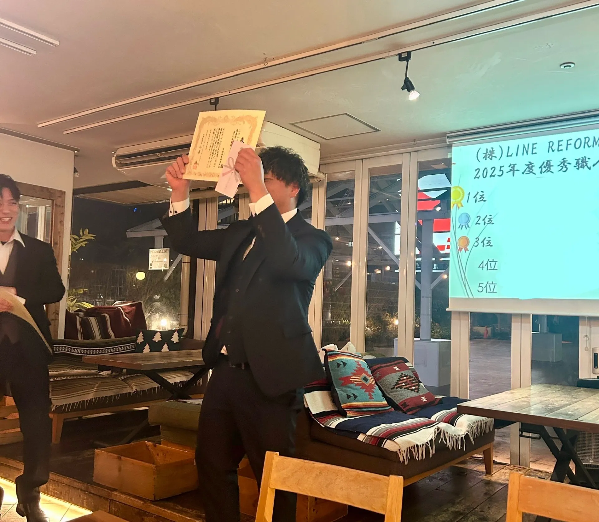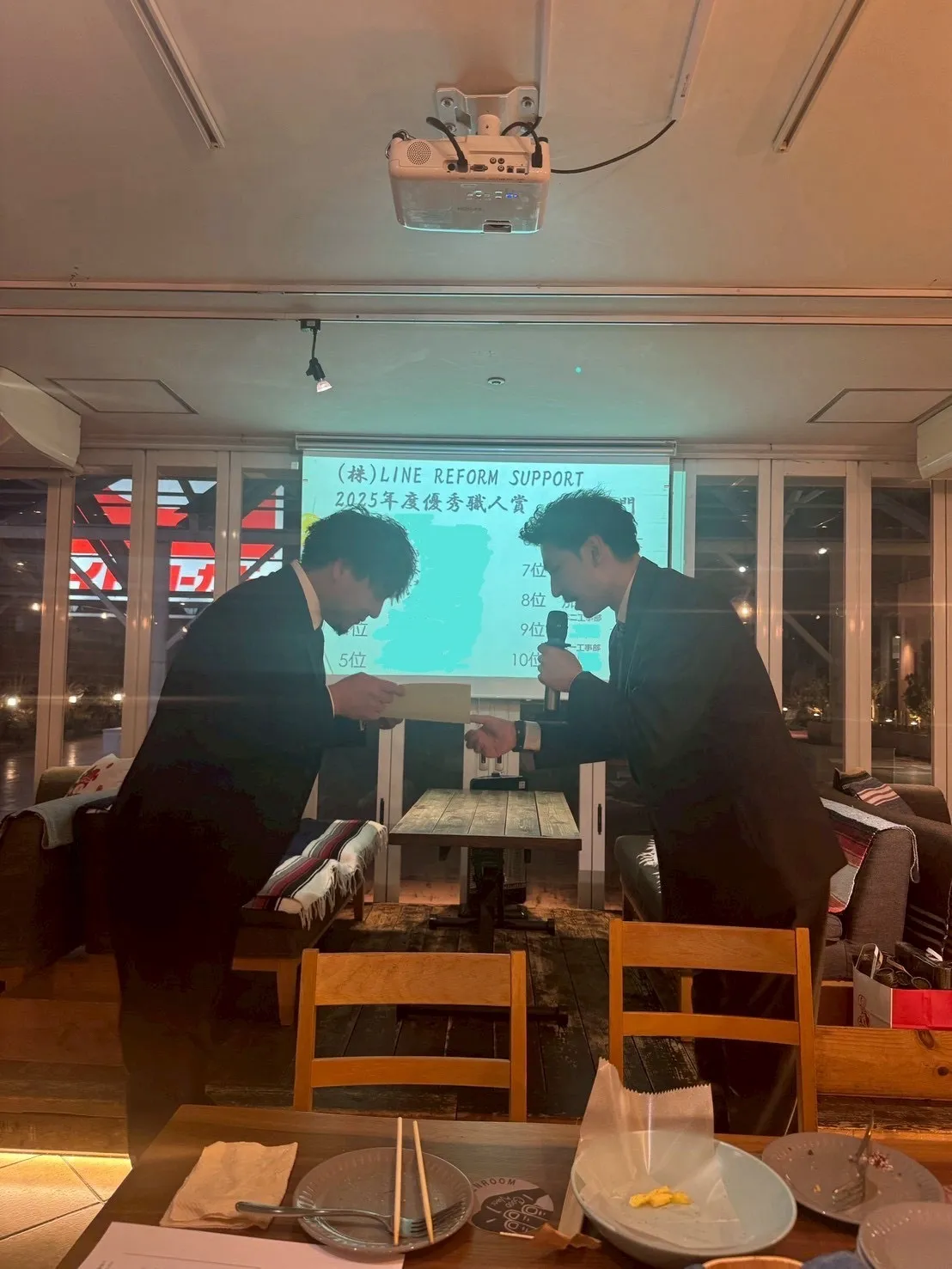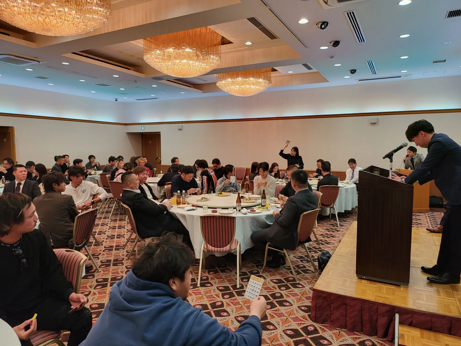 今年の忘年会は複数の拠点に分かれて開催され、それぞれ一年間頑張ってくれた社員をねぎらうべく恒例となっている豪華景品の当たるビンゴ大会と、新たに今年から優秀社員を表彰する優秀職人表彰式を開催しました!